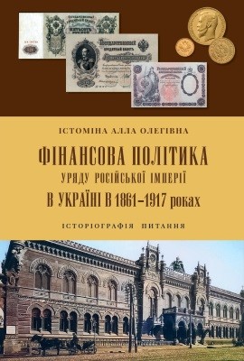 Істоміна А. Фінансова політика уряду Російської імперії в Україні (1861–1917 рр.): історіографія питання. ‒ Київ: ТОВ “Видавничий дім “АДЕФ-УКРАЇНА”, 2023 ‒ 412 с., У монографії кандидата історичних наук Істоміної Алли проведено історіографічний аналіз праць з проблем фінансової політики уряду Російської імперії в Україні у 1861–1917 роках, виокремлено сім груп історіографічних джерел та здійснено аналіз іхньої інформативності., Зроблено акцент на дослідженнях стану проблем податкової політики та діяльності податкових і митних органів, грошово-кредитної політики, формуванні місцевих бюджетів у Наддніпрянській Україні в пореформенний період; охарактеризовано історіографію цінової політики уряду Російської імперії у другій половині ХІХ — на початку ХХ століття в Наддніпрянській Україні; розкрито наукове осмислення проблем податкової, бюджетної, грошової політики уряду Російської імперії в період Першої світової війни в Наддніпрянській Україні та вперше — на окупованих територіях Галичини та Буковини; визначено перспективні напрямки подальших досліджень., Загалом, робота містить посилання на 973 публікації та видання, що складають основу для наукових досліджень істориків, економістів, юристів та соціологів, які вивчають зазначений історичний період