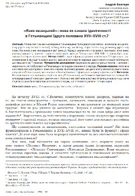 Мовна палітра ранньомодерної Гетьманщини була доволі розмаїтою і включала канцелярську українську («проста мова»), латину, польську, російську, старослов’янську, розмовну українську мови. На кожну з них покладалися свої функції. Поряд з уявленнями про власні територію, етногенез, картину минулого, пантеон героїв та антигероїв, мова в Гетьманщині XVII-XVIII ст. також була важливим фактором ідентичності.