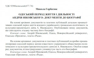 Завантажити Стаття «Одеський період життя і діяльності Андрія Ніковського: документи до біографії» ⤵️