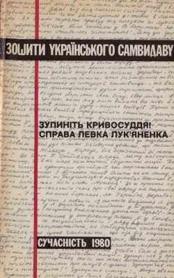 ЗУПИНІТЬ КРИВОСУДДЯ! СПРАВА ЛЕВКА ЛУК’ЯНЕНКА / УПОРЯД., ДОВІДКИ І ПЕРЕДМОВА С. САДОВСЬКОГО. 1980, [Мюнхен]: Сучасність, 1980. — 264 с.: фронтиспис, фото. / Зошити українського самвидаву, вип. ІІІ. — 21,2 × 13,5 × 1,5 см. В оригінальній обкладинці. Передмова Степана Садовського. Автор однієї зі вступних статей — Іван Світличний. Художнє оформлення обкладинки Ірини Івахів.