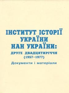 ІНСТИТУТ ІСТОРІЇ УКРАЇНИ НАН УКРАЇНИ: Друге двадцятиріччя (1957-1977): Документи і матеріали / Ін-т історії України НАН України; Упоряд. О. С. Рубльов; Відп. ред. акад. НАН України В. А. Смолій.- К.: Інститут історії України НАН України, 2007. – 464 с., До нинішнього збірника, який є продовженням й розвитком попередніх публікацій з історії установи, включено 109 документів, датованих 1957-1977 pp. Джерельну основу видання складають документи Наукового архіву Інституту історії України НАН України, а також Центрального державного архіву громадських об’єднань України (ЦДАГО України), Центрального державного архіву вищих органів влади та управління України (ЦДАВО України). Використано також окремі справи Галузевого державного архіву Служби безпеки України (ГДА СБ України)., Для публікації відібрано найхарактерніші види документів, які дозволяють всебічно висвітлити особливості розвитку історичної науки в Україні окресленого періоду на прикладі діяльності Інституту історії АН УССР, – постанови ЦК КП України, постанови і розпорядження Президії АН УССР та Секції суспільних наук Академії, протоколи і стенограми засідань, нарад і вчених рад, службове листування (Інститут історії – Президія й Секція суспільних наук АН УССР, відділи ЦК КП України, міністерства й відомства України), звіти про наукові відрядження та ін., Для професійних істориків, викладачів, студентів, учителів, краєзнавців, усіх, хто цікавиться історією України та історією вітчизняної історичної науки.