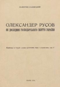 Українська онлайн бібліотека » Валентин Садовський » Стаття «Олександер Русов як дослідник господарського життя України»