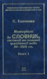 Тимченко Є. Матеріали до словника писемної та книжної української мови XV – XVIII ст. У 2 кн. / В.В. Німчук, Г.I. Лиса (підготували до видання). – К., Нью-Йорк, 2002. – Кн. 1. – 512 с. – (Пам’ятки української мови . Серія словників)., “Материалы для словаря письменной и книжной южнорусской речи XV- XVIII вв.” видатного мовознавця Є.Тимченка (1866-1948) – перший історичний словник української мови, складений на наукових засадах. Разом із “Словарем української мови” за ред. Б. Грінченка словник у свій час було нагороджено премією М. Костомарова. Але праця Є. Тимченка досі залишилася в машинопису. За відсутності історичного словника української мови, який би хронологічно охоплював увесь староукраїнський період, праця Є.Тимченка й нині може служити великою підмогою для тих. хто вивчає розвиток української мови (особливо – лексики й словотвору), досліджує історію українського народу, його культуру, читає старожитні тексти в оригіналах.
