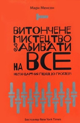 Бестселер New York Times, що переконає вас: позитивного мислення може бути забагато. Книжка навчить конструктивно сприймати негативний досвід та допоможе відшукати надійне підґрунтя для щасливого життя., ТЕМАТИКА, Саморозвиток, психологія, мотиваційна література., ПРО КНИЖКУ, Ми живемо в культурі, зацикленій на занадто оптимістичних очікуваннях. Із самого дитинства нам нав’язують нереалістичні ідеали, яких ми прагнемо досягти попри все: лише найвищі оцінки, досконала зовнішність, надсучасні ґаджети, найкрутіша робота, тільки екзотичні подорожі й не менш яскраві світлини в соцмережах. Постійно женучись за успіхом і щастям, ми намагаємося уникати будь-якого негативу. Однак негативний досвід, як переконує Марк Менсон, надзвичайно цінний: він звільняє нас від міражу щастя., ДЛЯ КОГО КНИЖКА, Для всіх, хто хоче тверезо сприймати повсякденне життя і сміливо дивитися в обличчя викликам, беручи із цих ситуацій максимум для власного розвитку., ЧОМУ САМЕ КНИЖКА “ВИТОНЧЕНЕ МИСТЕЦТВО ЗАБИВАТИ НА ВСЕ”, Книжка допоможе формувати реалістичні очікування, конструктивно сприймати негативний досвід та цілеспрямовано діяти у складних ситуаціях, не розпорошуючись на дрібниці.