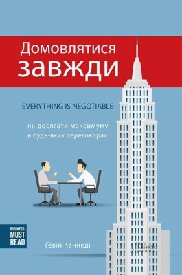 Згадайте, скільки разів ви втрачали жадані контракти лише через те, що програвали на переговорах. А як часто власні діти ставлять вас у безвихідь? Проаналізуйте останню розмову з друзями, адже щодня ми проводимо десятки переговорів, навіть не помічаючи цього., Цей посібник з успіху допоможе вам:, • Досягти максимуму в будь-яких формах спілкування, • Розібратися в стратегічних підходах до переговорів, • Опанувати безпрограшними тактичними прийомами, • Дізнатися про чотири типи співрозмовників, розпізнати їх та перемогти, • Отримати бажане й назавжди змінити життя!, Книжка стане в нагоді при переговорах із клієнтами, партнерами, підлеглими, постачальниками, керівниками й навіть у сімейних стосунках., Як результат, ви налагодите родинні відносини, навчитеся укладати складні контракти та навіть купувати автівку за значною знижкою., Змініть своє життя, прислухаючись до порад Ґевіна Кеннеді, автора 11 книжок, професора, перемовника #1 у світі!
