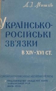 Мишко, Дмитро Іванович., Українсько-російські зв’язки в XIV-XVI ст. / Дмитро Іванович Мишко . – Київ : Видавництво АН УРСР, 1959 . – 176 с.
