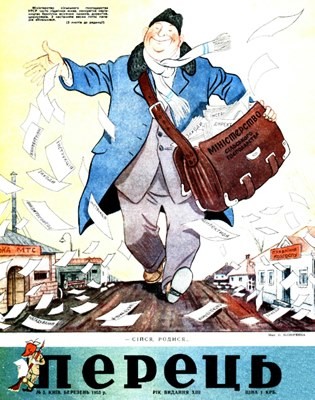 «Перець» — український сатирично-гумористичний ілюстрований журнал. У повоєнні часи став одним із найпопулярніших видань в Україні та за її межами. Стоячи на прорадянських позиціях щодо зовнішньої політики, журнал критикував вади суспільства: пияцтво, бюрократію тощо., К.: ЦК КП(б)У “Радянська Україна”, 1953. – 12 с