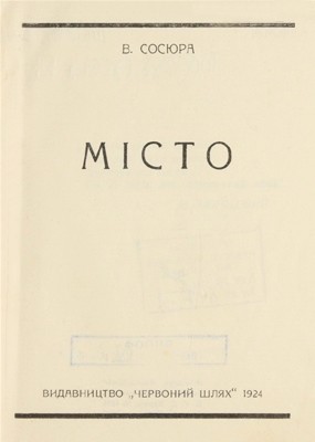 Сосюра, Володимир Миколайович (1898–1965)., Місто / В. Н. Сосюра: видавництво “Червоний Шлях”, 1924. – 43 с.