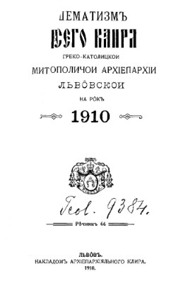 Довідник «Шематизм Львівської архиєпархії» 1910 рік