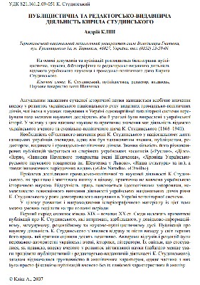 На основі документів та публікацій розглядається багатогранна публіцистична, наукова, бібліографічна та редакторсько-видавнича діяльність відомого українського науковця і громадсько-політичного діяча Кирила Студинського.