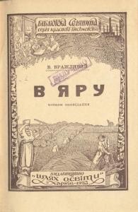 В. Вражливий найперш привертає увагу умінням у новелістичній формі вибудовувати напружений сюжет, насичені діалоги героїв, лаконічно окреслені характери. Непманське життя міста, студентський побут, незаможницькі злидні., Харків: Шлях освіти, 1923. — 49 с. — (Бібліотека селянина).